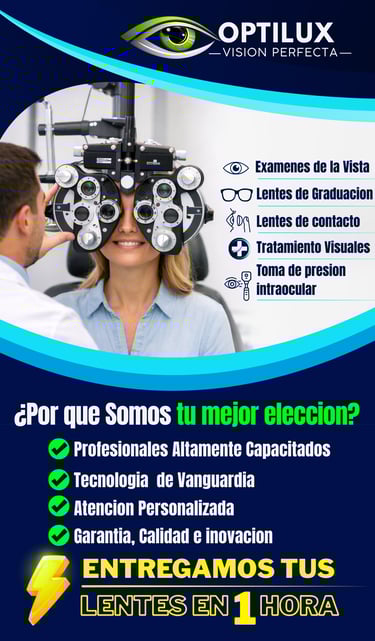 Evaluaciones completas con optometristas certificados para tu salud visual, equipos de lo ultimo en tecnologia para una presicion en graduaciones, con la garantia de sastifacion total
